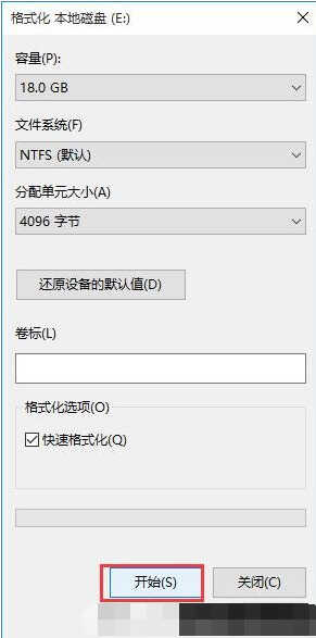5、在弹出的窗口中会显示该磁盘的相关信息,确认后点击开始按钮即可,如下图所示: