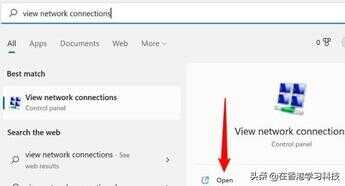 单击开始按钮,在搜索栏中键入“查看网络连接”,然后单击“查看网络连接”。