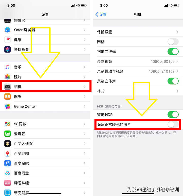 操作方法:设置--相机--关闭【保留正常曝光的照片】