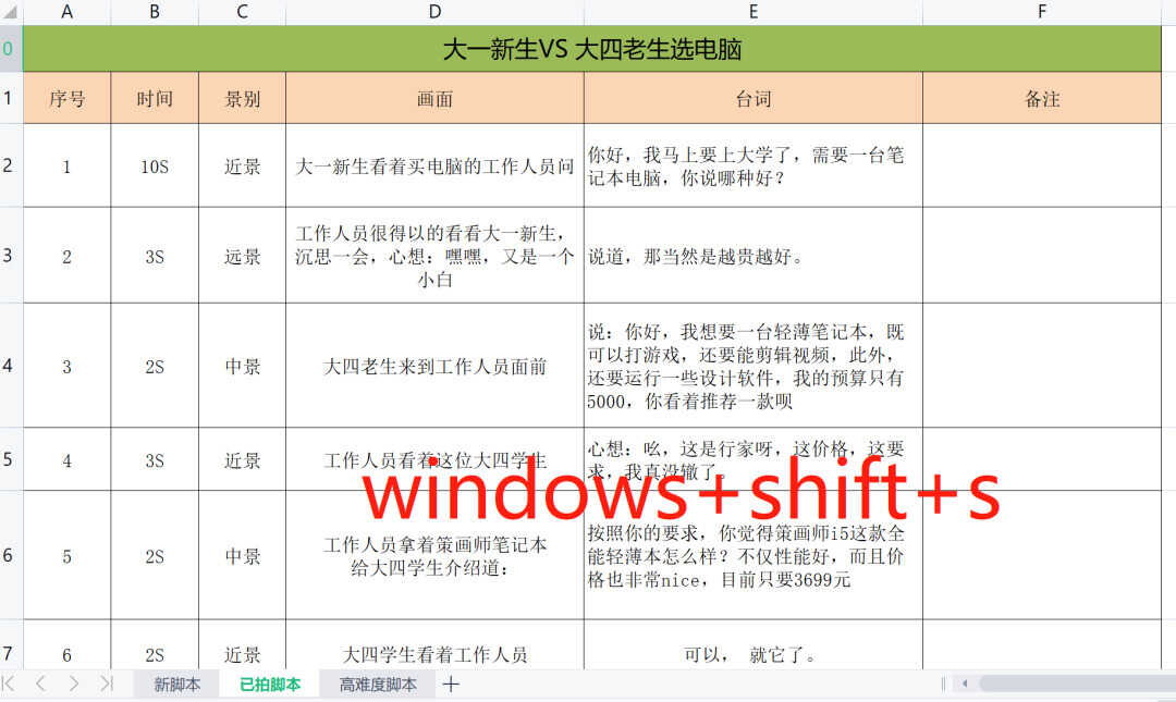 如下图,我正在应用Excel软件进行脚本撰写,那么截图就是当前Excel软件的全屏截图了(包含电脑菜单栏等)。