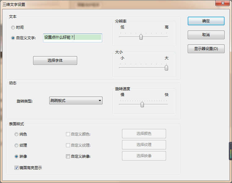 5、三维文字是可以自定义文字的,我们只要点击右边的设置进入如下页面,然后输入我们想要的自定义文字,然后选择动态效果就行了;