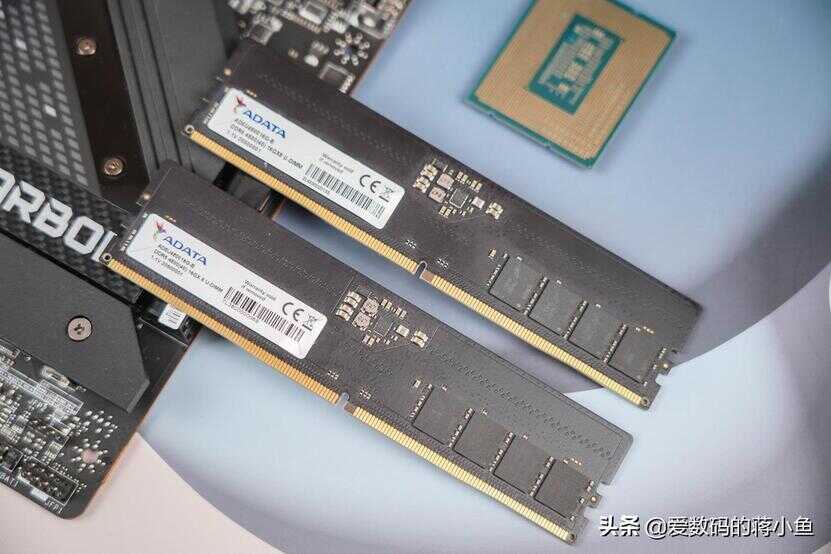 这条威刚DDR5内存上还可以看到的一个不同的地方,在内存上集成了一些芯片,这些芯片就是PMIC(电源管理IC芯片)。
