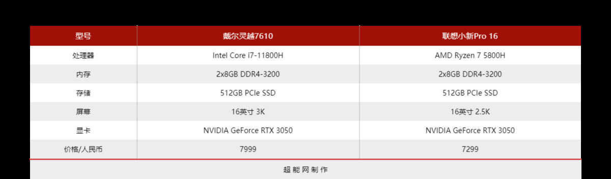 测试平台:联想小新Pro 16和戴尔灵越7610