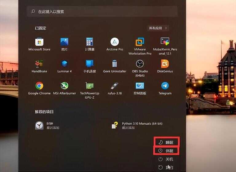 这样我们就可以在开始菜单中的电源选项,找到相对应的“休眠”和“睡眠”功能按钮了。怎么样?这个方法是不是挺简单的?原来休眠按钮并没有丢失,只是因为系统设置不正确,把这个功能按钮隐藏起来了。只需要通过以上操作,就可以快速地还原休眠按钮了。