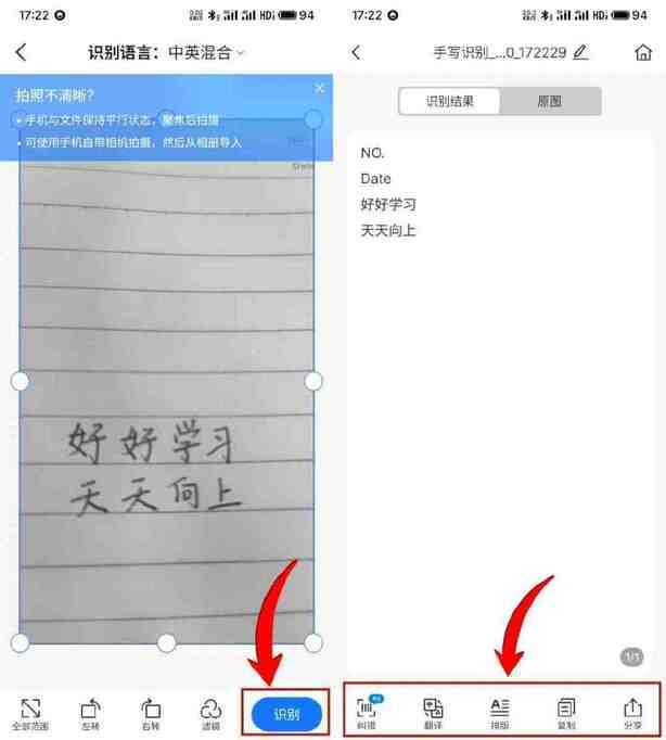 3,点击拍摄,即可得到翻译后的文字,大家可以看到,识别后的效果还是非常准确的。我们也可以对识别后的文字进行纠错,翻译,排版,复制等操作,也可以直接分享给好友,简单又快捷~