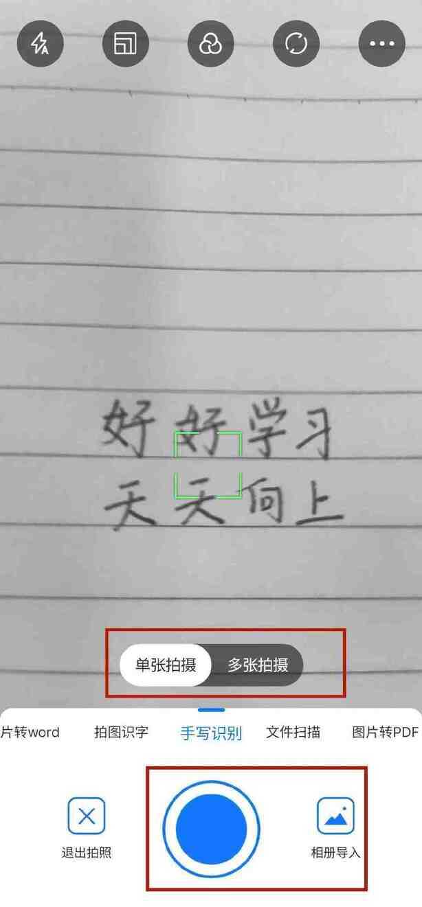 2,我们可以根据需求,选择单张拍摄,或者多张拍摄,如果是已经拍摄下来的图片,我们也可以从相册导入,方便又快捷~