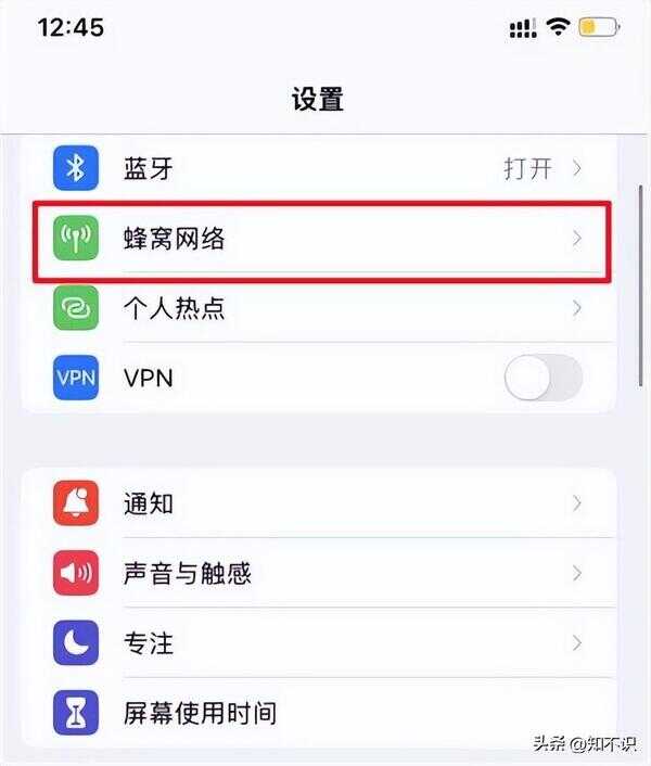 第一步:在手机设置菜单中选择并点击【蜂窝网络】(如下面图片所示)。