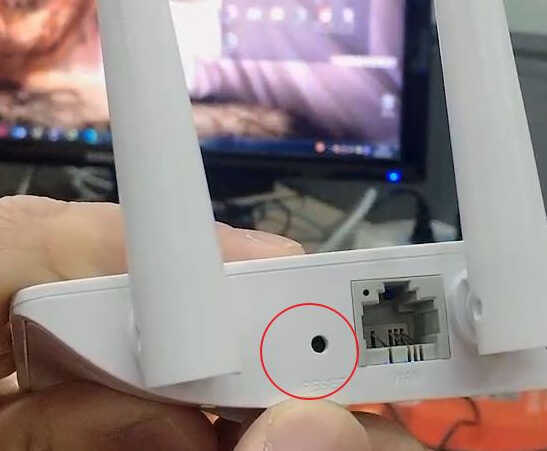 3、然后我们找支笔或者牙签之类的东西插进重置孔内,就能碰到里面的一个按钮,按住几秒钟。