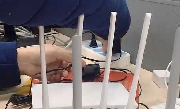 1、我们先保证路由器的通电状态,给路由器连接电源。