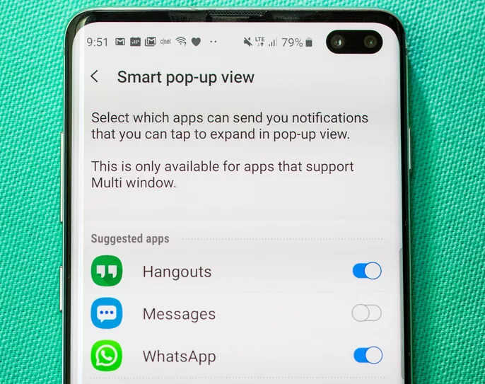Galaxy S10手机最多可以识别30个场景并自动调整设置。你可以开关它来询问或拒绝这个建议。