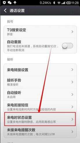 第四步:接下选择‘【来电时状态设置】 猛撮插入