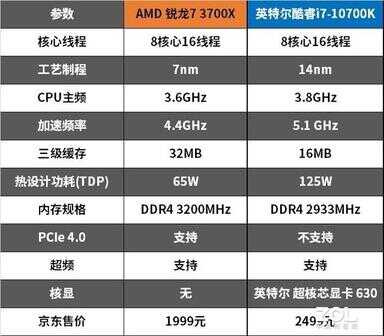 这次我们会测试AMD锐龙7 3700X与英特尔酷睿i7-10700K的单线程、多线程、3D MARK以及游戏成绩。