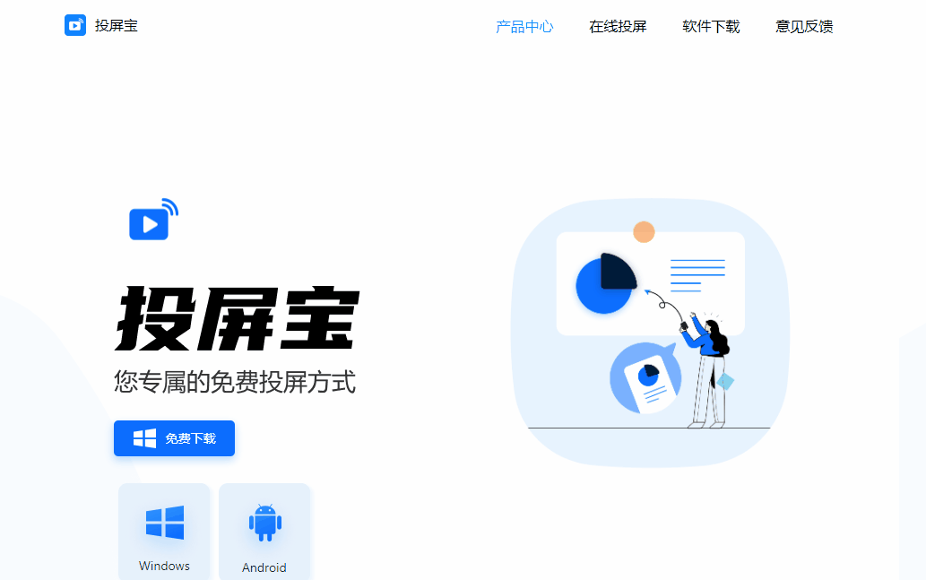 我们还打开浏览器进行在线投屏,更加快捷方便!先进入投屏宝这个网站,选择【在线投屏】功能,这时候屏幕上会出现一个投屏码。