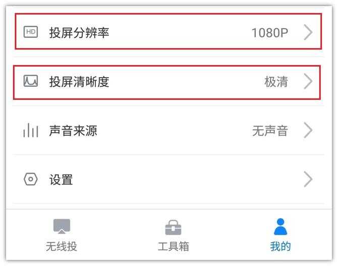 如果你第一次投屏觉得画质不清晰,可以在手机上设置一下投屏分辨率和投屏清晰度,都调成最高。