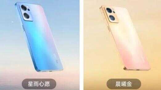 上图为reno7的星雨心愿和晨曦金两款配色,分别采用星雨光刻工艺和星钻工艺
