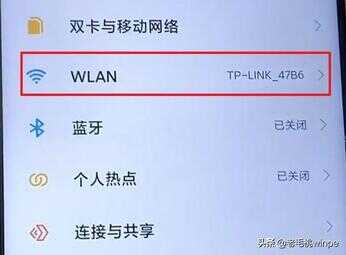 第一步:打开手机设置,点击【WLAN】,确保下连上的是自己家的无线网。接着,点击无线网进入到设置中。