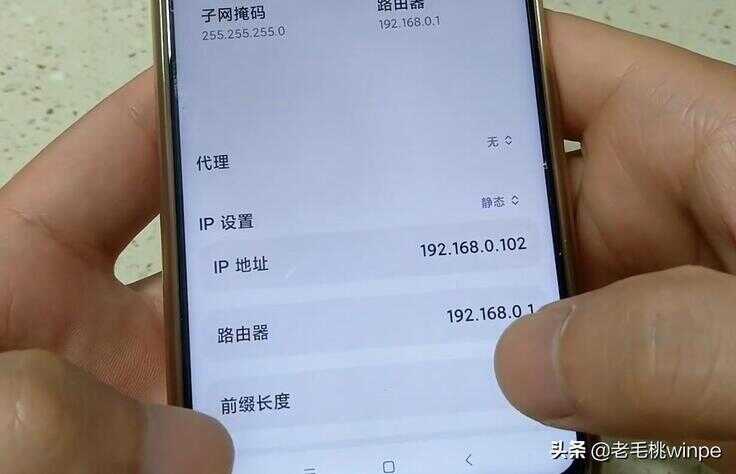 第二步:下拉页面,找到【IP设置】,点击【IP地址】选择为【静态】,接着复制路由器一栏的数字。