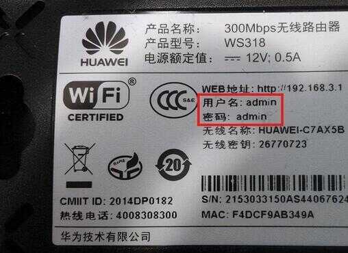 有些路由器是有默认登录密码的,可以在该路由器底部铭牌中,查看到默认登录密码信息,如下图所示。
