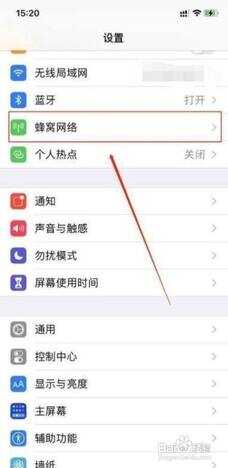打开iPhone13的设置,选择【蜂窝网络】,如图所示。