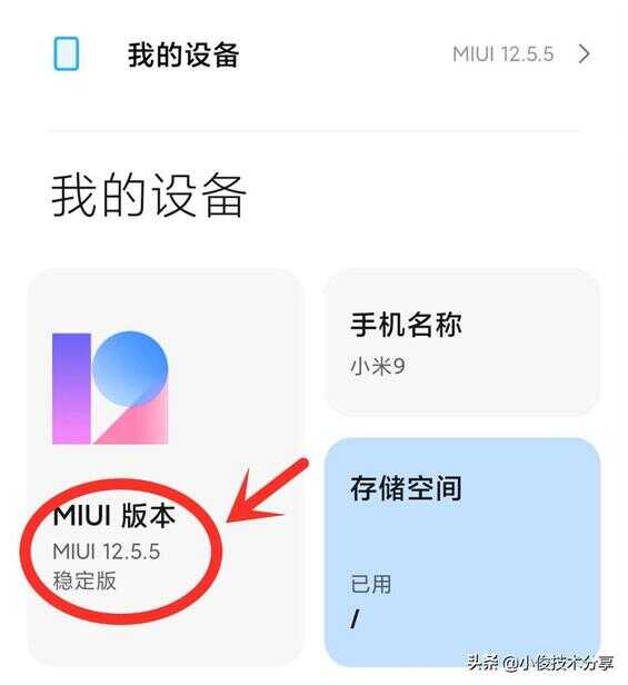 在设置中点击【我的设备】,然后选择【MIUI版本】