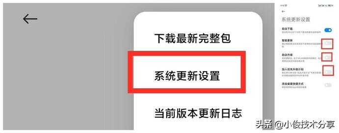 打开之后点击【三个小点】选择【系统更新设置】,然后把下面的三个开关关掉!