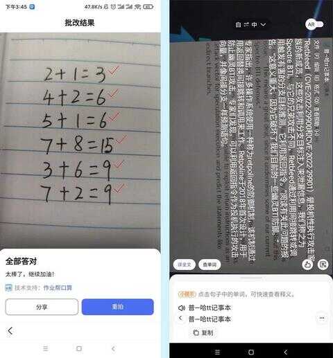 浏览器中的扫一扫支持口算批改,对于家里有小学生的家长来说实在太方便了有没有?只要将镜头对准算术题,并用手滑动到【答疑】-【口算批改】功能,就可以快速检查口算题目的对错。做对的题目在后面就会打勾,做错的题目则在后面显示打叉。对对错错一目了然,用这个功能帮孩子检查口算题效率很高,实用又方便。我个人测试了一下,挺好用的,关键是准确率很高。