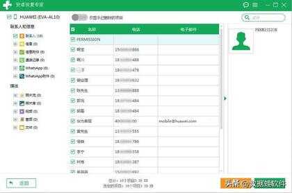 步骤3:软件傻瓜式的操作,会自动直接开始扫描并将扫描结果数据显示出来。扫描到的即是所有可以支持恢复的数据了。如果没有找到需要的联系人,即是已被永久删除。如果扫描到您的数据,恭喜你,找回重要的数据了。