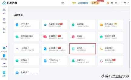 步骤步骤:打开手机上或者电脑上的百度网盘,比如电脑端的操作:在首页处左下方找到“工具”,点击之后进入全部工具页面。如图点击“通讯录”之后,根据弹出的新提示框,找到之前已经备份的联系人接口。