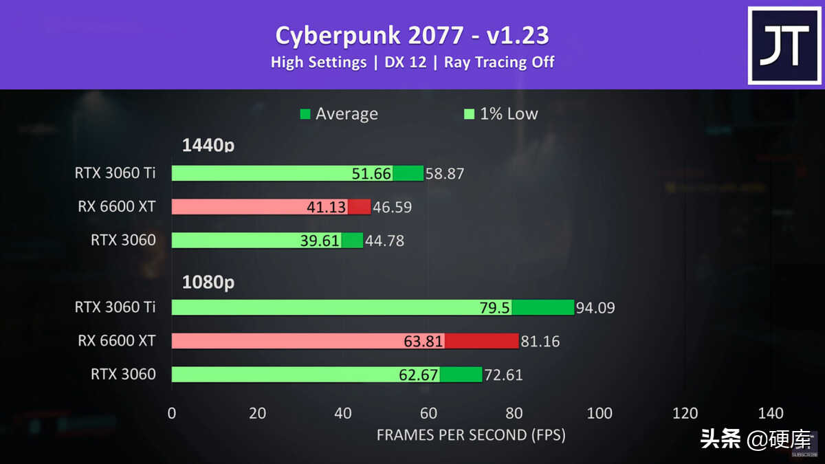 在不开启光追和N卡不开启DLSS的条件下,6600xt的性能是高于3060的。目前这两张卡处于同一价位,而且在某些针对A卡优化的游戏比如育碧的刺客信条、看门狗,6600xt在1080p下的表现还可以摸一摸3060ti。总体来说,和3060、3060对比,6600x的性能还是有一定性价比的。
