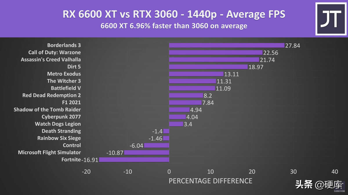 在2k分辨率下,3060比6600xt平均差了6.96%,差距拉近。3060ti比6600xt高了22.39%,差距扩大。这可以说明6600xt在2k分辨率下不太占优势。