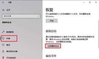 1、 win+i打开设置—更新和安全—恢复,点击立即重新启动,进入高级启动。