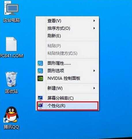 1、鼠标右键在窗口中选择个性化,如下图所示: