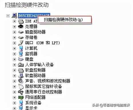 2、还有我们要检查键盘的驱动问题,右键点击【我的电脑】→【管理】,扫描检测硬件改动,扫描完成后会出现【键盘】图标。