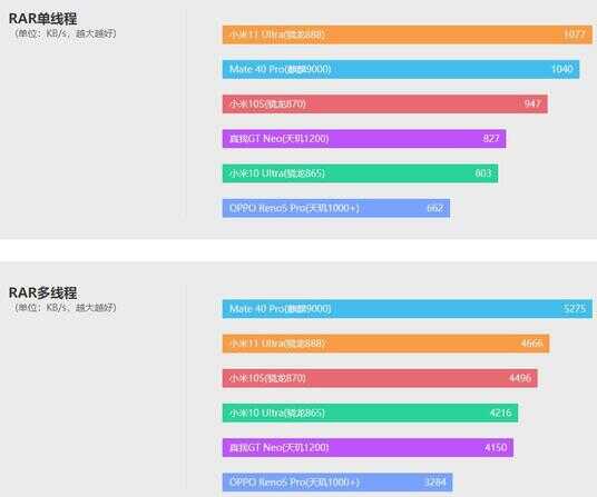 - CPU实际性能输出略弱于骁龙870。虽然GeekBench里和骁龙870五五开,但偏普通应用的RAR测试里,差距较大;