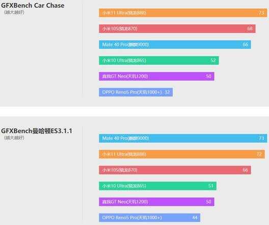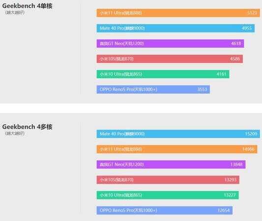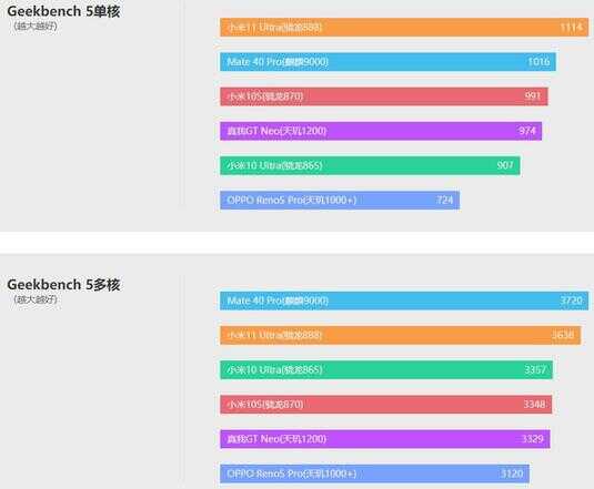 我们找来骁龙888的小米11 Ultra、骁龙865的小米10 Ultra、骁龙870的小米10S、天玑1000+的Reno5 Pro和麒麟9000的华为Mate 40 Pro作为对比。