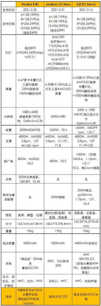 真我GT Neo使用6.43英寸1080P+的120Hz三星AMOLED屏幕,360Hz触控采样。64MP的IMX682主摄+8MP超广+2MP微距,4500mAh电池+50W快充。6+128版1799元, 8+128版1999元,12+256版2399元(首发2299)。
