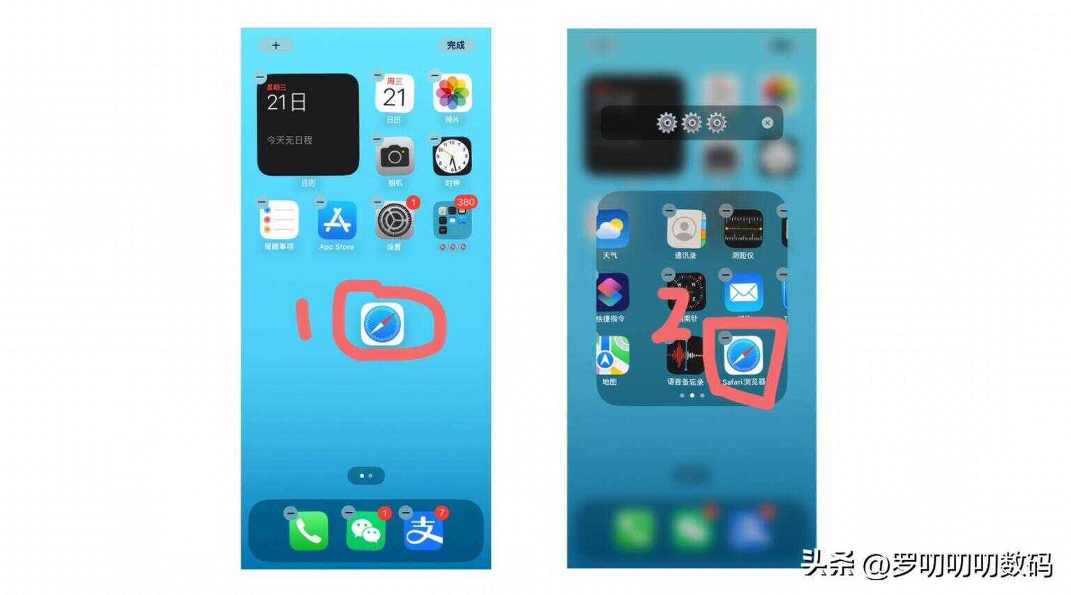 1. 长按桌面下方的「搜索框」/「...」(图示处)