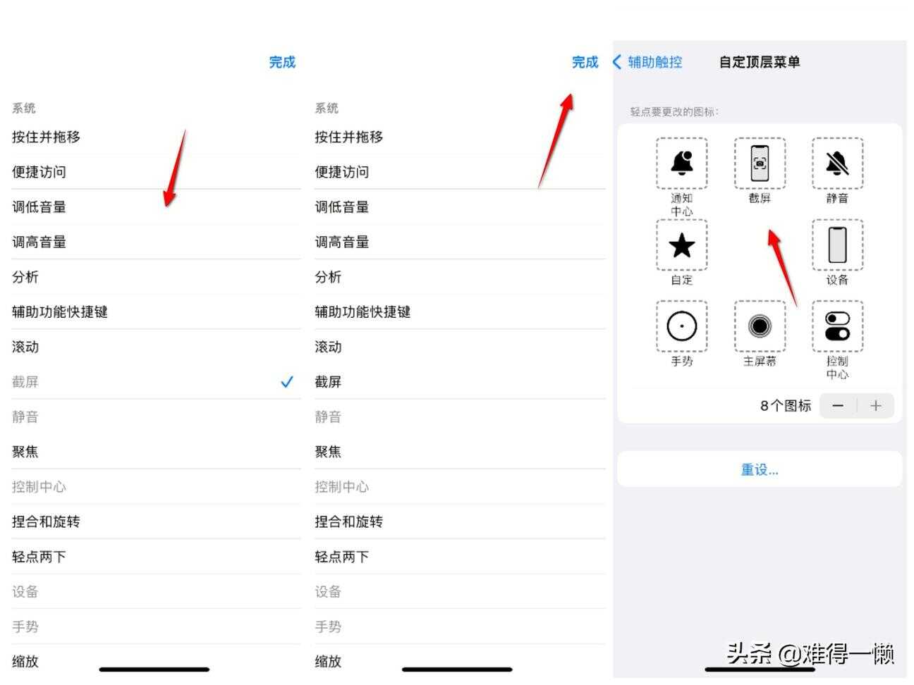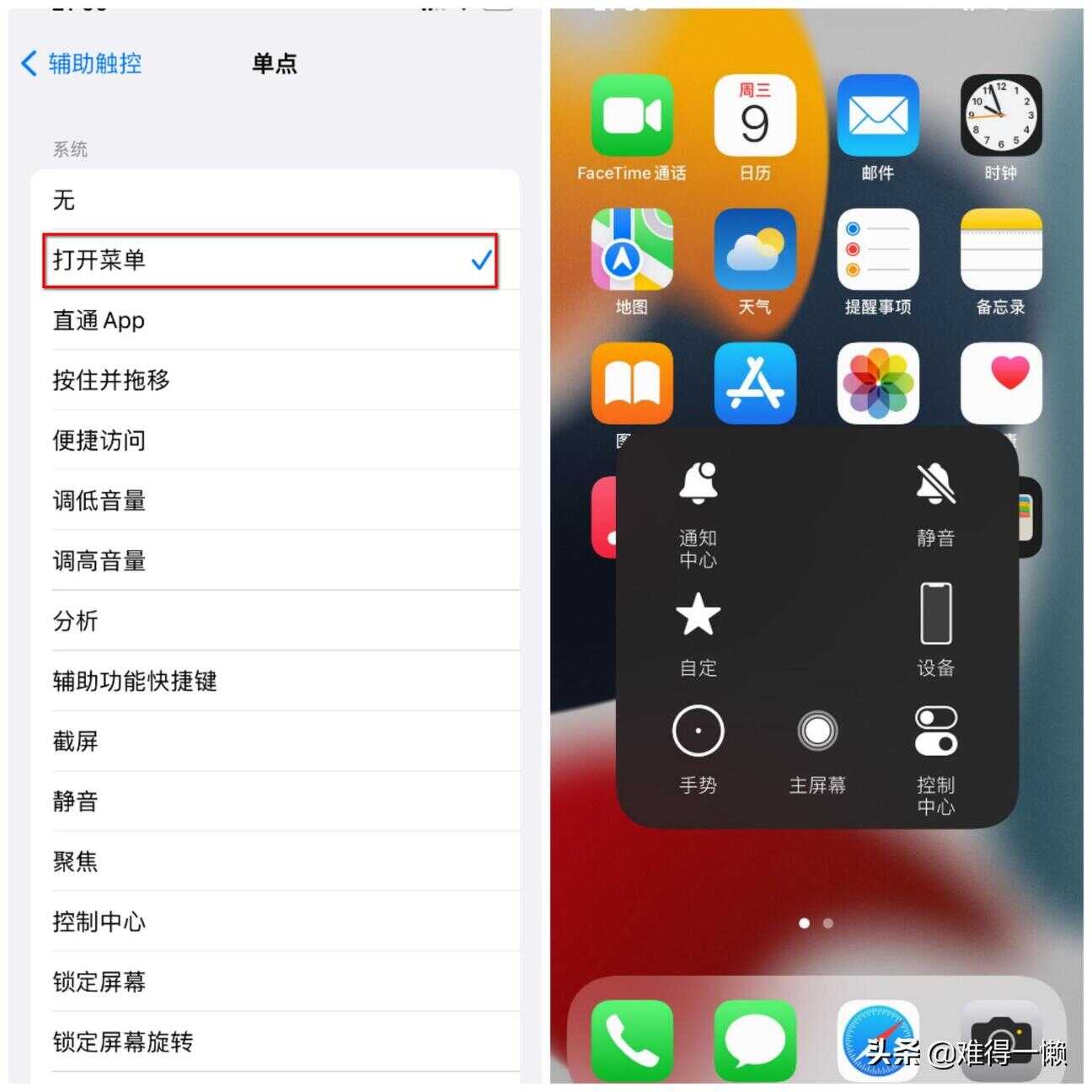 开启辅助触控之后,在主屏界面会显示一个小圆圈,被人们亲切地称呼为“小圆圈”。不要看这个小圆圈不起眼,其实蕴藏了丰富的功能。