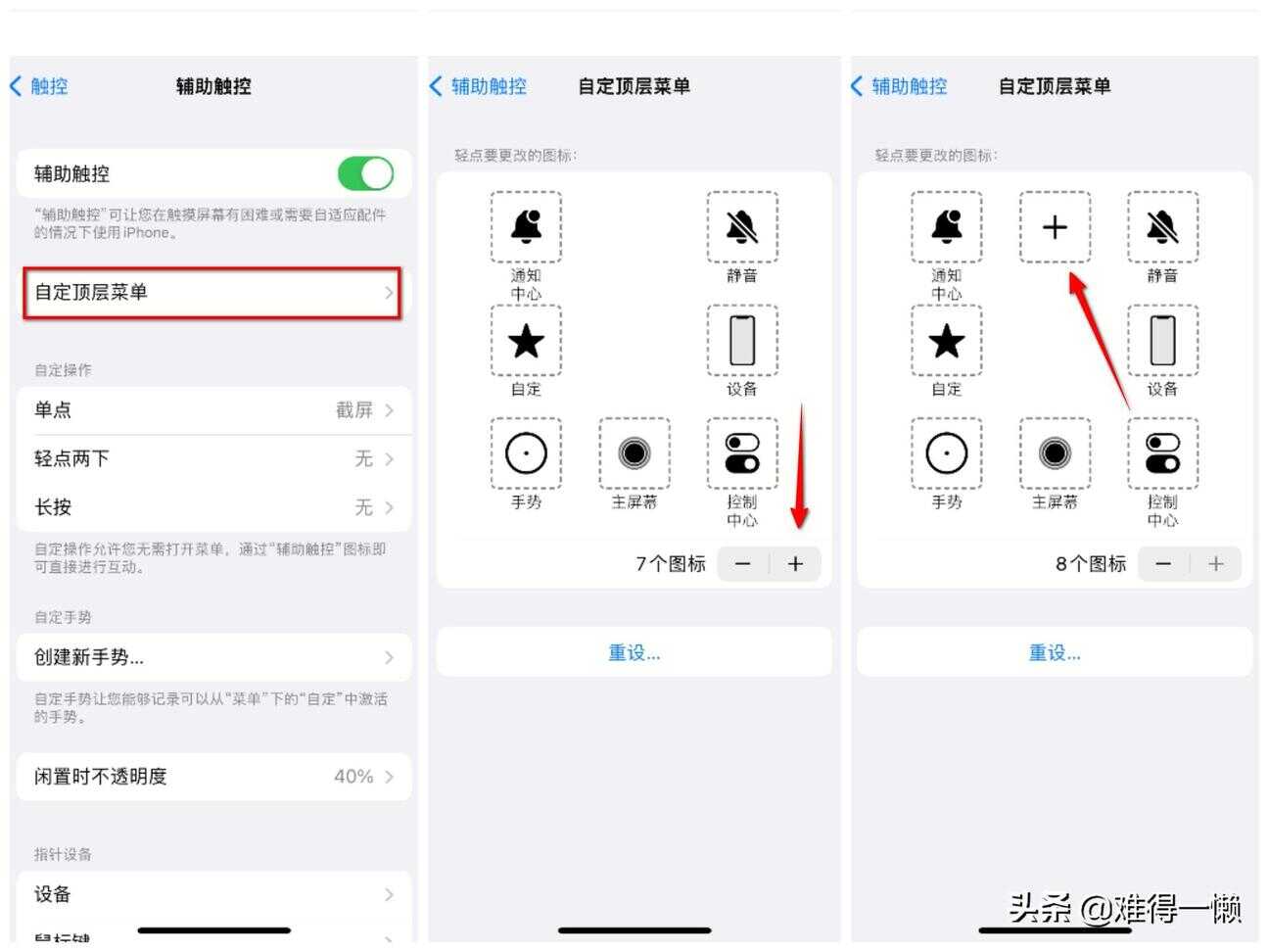 设置方法:【自定顶层菜单】-【点击添加】-【出现加号位置】