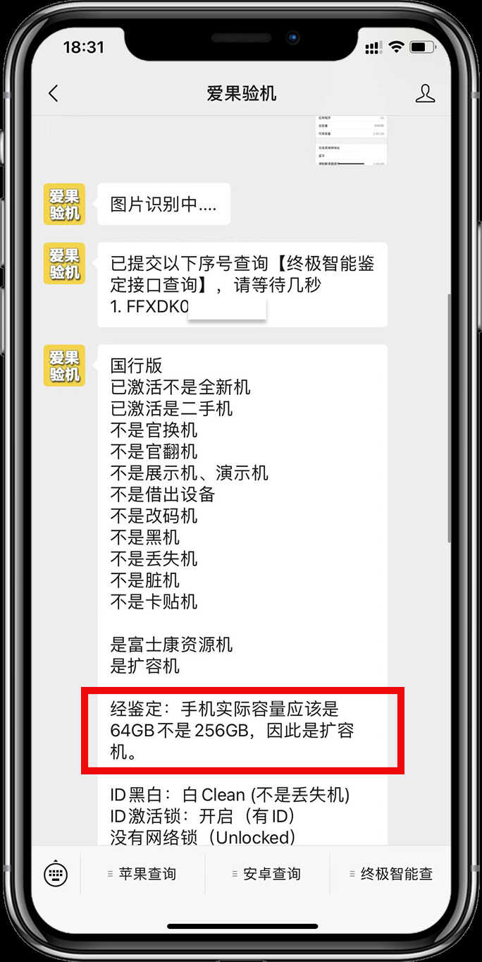 所以大家在购买iphone的时候,最好先做一个gsx验机,检查一下机器的真实信息,千万不要踩坑买到扩容机。