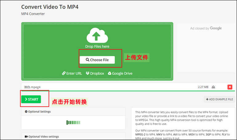 第三步 接下来上传需要转换的视频文件,上传文件完成之后,点击【开始转换】即可。