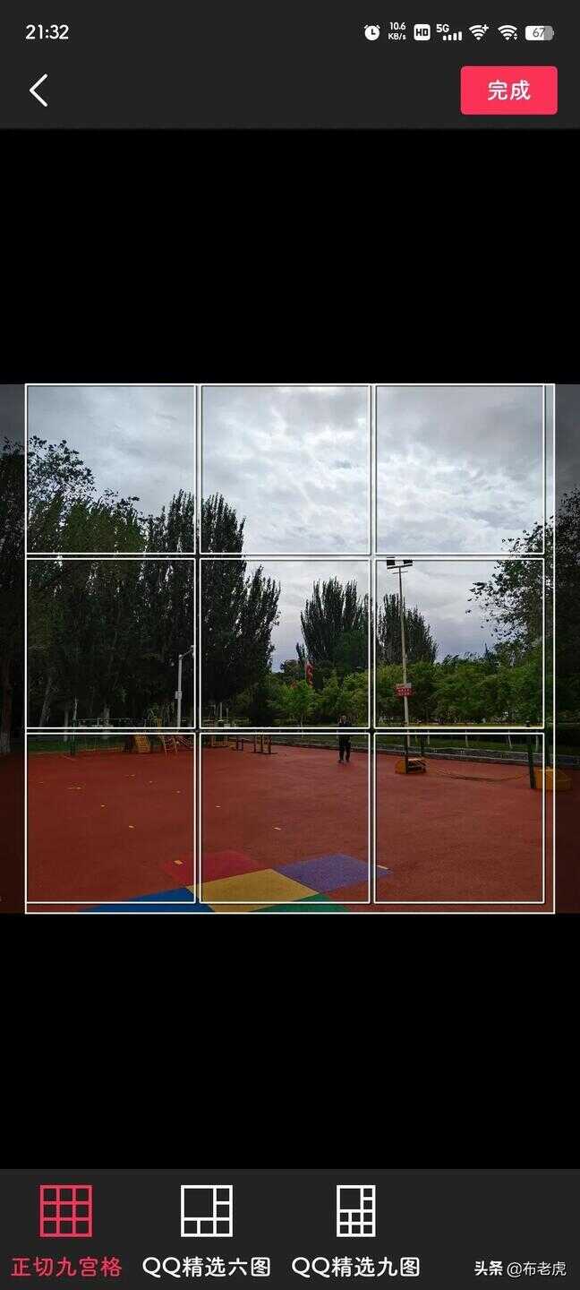 就是这么简单,你想要的九宫格就自动给你比划好了,现在可以拖动图片左右移动,选择你最满意的位置,确定了以后,直接点右上角的完成。