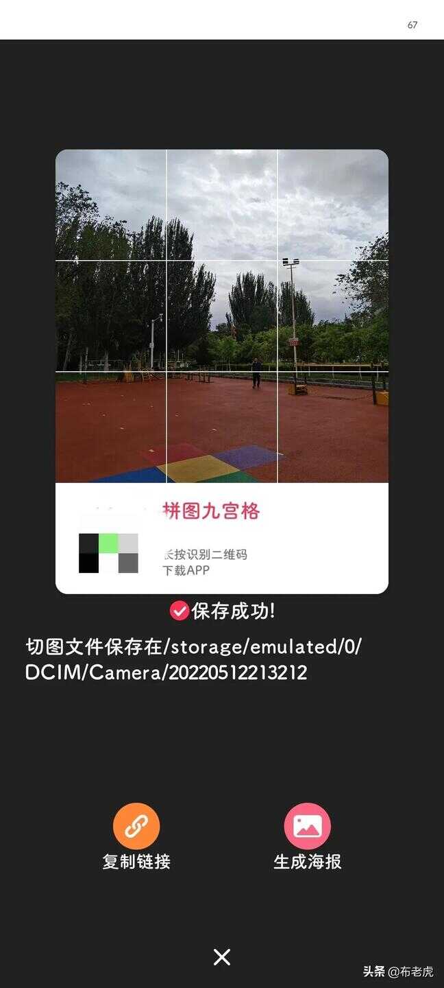 点击完成后,九宫格切图文件会自动保存到你的相册里,而且是按照顺序的,非常方便后期取用。同时还能生成海报。
