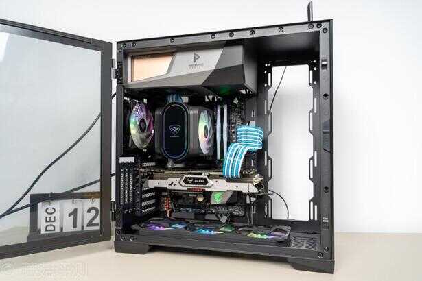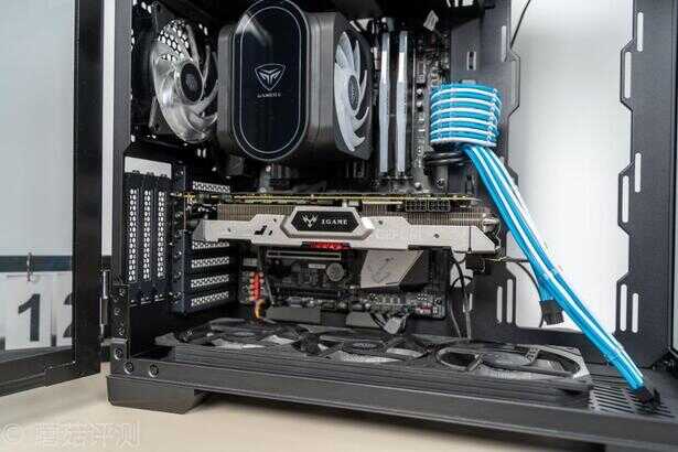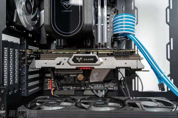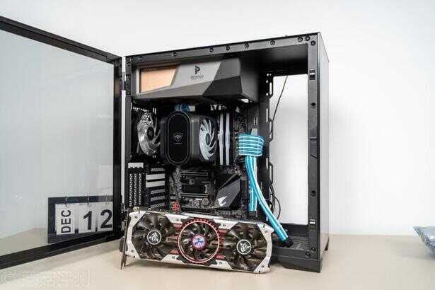 ▼装好之后的效果,显卡的侧面颜值确实可以。另外,安钛克这款冰钻P120,显卡固定位置偏下,下面可以安装机箱风扇,这样就可以对显卡的散热进行特别的照顾,搭配显卡的风扇启停非常好用,待机情况下,显卡的核心温度也很低
