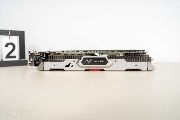 ▼显卡顶部,中间是IGAME的LOGO,然后两侧都是银色的铝合金,还挺漂亮的