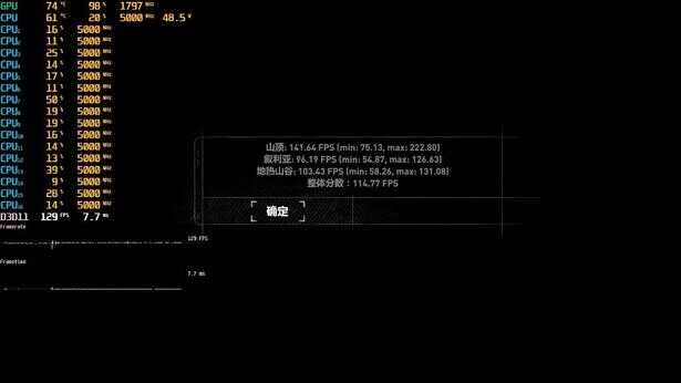 ▼最后测试结果,整体的平均帧数在114.77帧左右