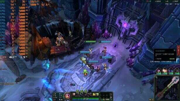 ▼LOL大乱斗模式,1080P分辨率,全极高画质,泉水帧数在460帧左右