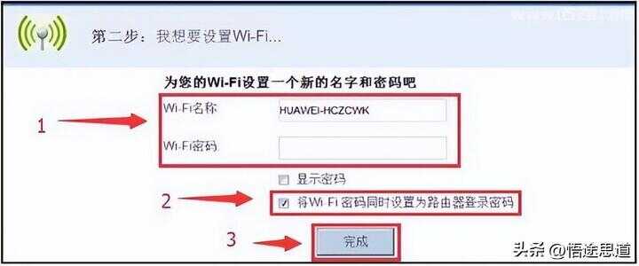 (2)、悟途网小编建议勾选“将 Wi-Fi 密码同时设置为路由器登录密码”,这样方便记忆。