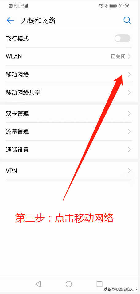 第三步:点击移动网络