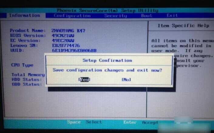 4.最后选择YES选项,点击键盘上的Enter键完成。